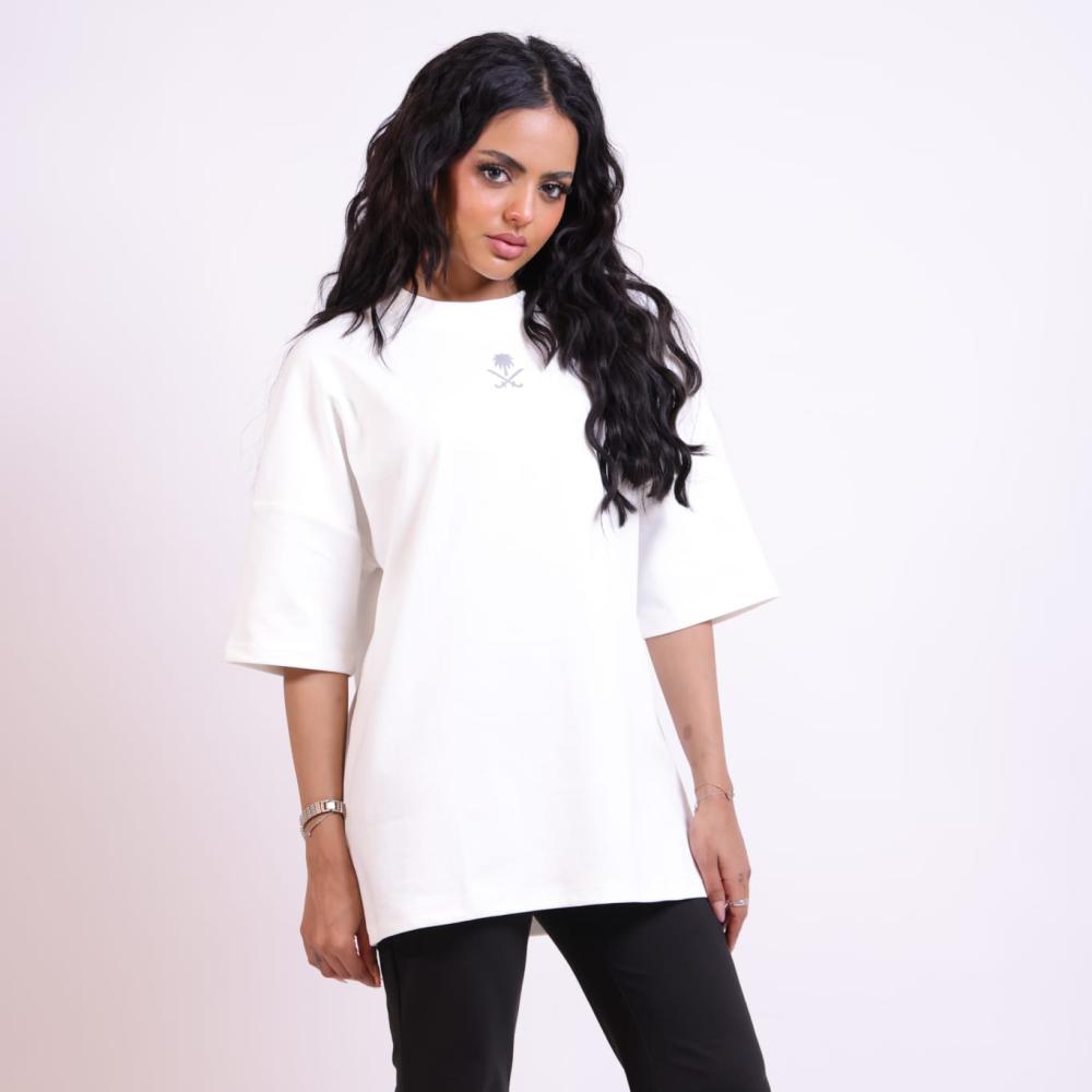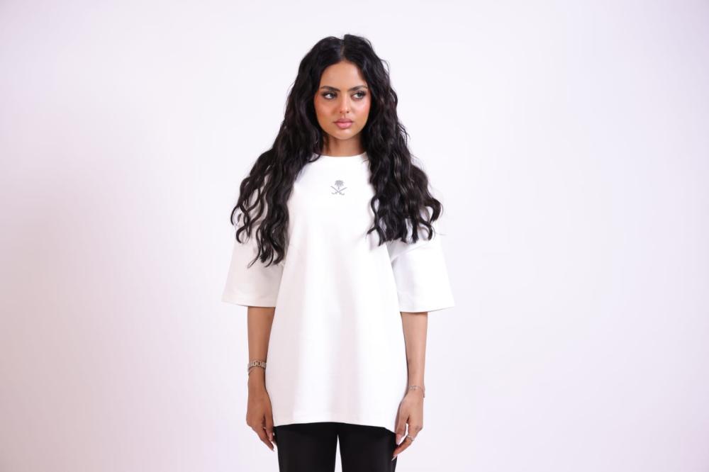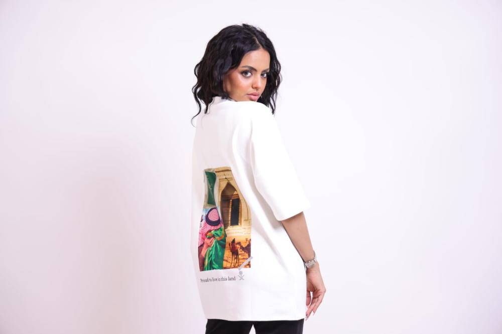 هذا التيشيرت يتميز بتصميم عصري يعكس الهوية السعودية بروح أنيقة وبسيطة: