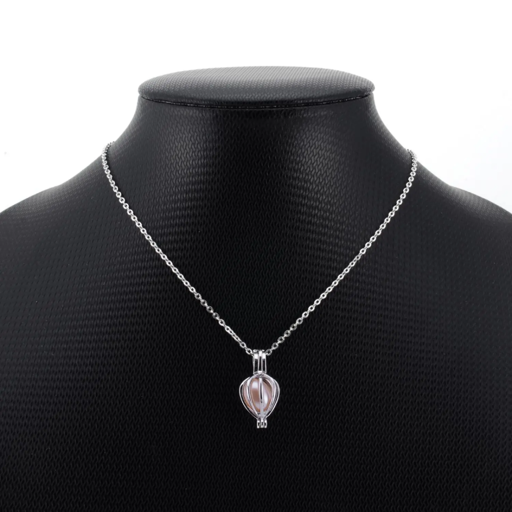 سلسال أنيق بتصميم قفص فضي يحتضن لؤلؤة لامعة،
